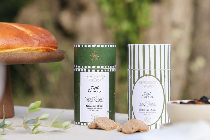 Et pour prolonger cette expérience sensorielle, nous avons créé des sablés à l’olive noir et à l’ huile d’olive, clin d’œil gourmand aux 13 desserts provençaux, en référence à la pompe à l’huile.