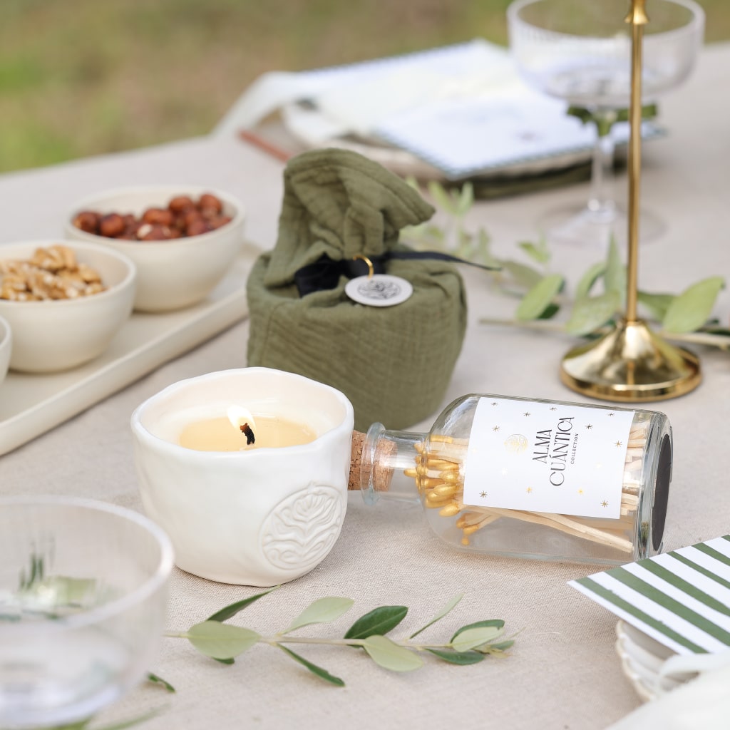 Découvrez le raffinement discret de notre élégante bouteille en verre pour allumettes dorées.